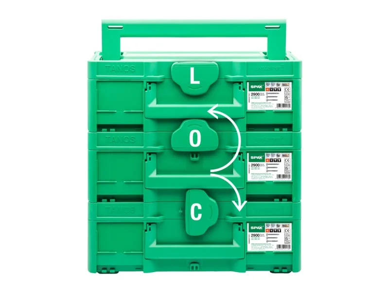Montagekoffer Systainer³ T-Loc Möbelbau - 100 % kompatibel zu anderen Systainern | 2.900 Schrauben in den 12 beliebtesten Abmessungen, Senkkopf, T-STAR plus, WIROX, plus 5 BITs T-STAR plus T10/T20 | Lock für einfaches Verschließen- Open für leichtes Öffnen, auch im verknüpften Zustand- Connect für schnelles Verknüpfen mehrerer Boxen | Modularer Innenraum, Trennstege individuell verstellbar | Ordentliche Aufbewahrung und sicherer Transport durch SPAX Box Systainer T-Loc I | SPAX Box Systainer mit freundlicher Genehmigung der Firma TANOS GmbH- www.TANOS.de - Ein komplettes Schraubenset mit 2.900 Schrauben in 12 Abmessungen beherbergt unser SPAX Box Systainer³ T-Loc Möbelbau. Die modular gestaltbaren Systainer kennen Sie auch als Aufbewahrungsboxen für Elektrowerkzeuge, die untereinander ganz einfach zu verbinden sind. Unser SPAX Box Systainer wird so zum integralen Bestandteil Ihrer Werkzeugboxen, Sie haben immer alles, was Sie brauchen dabei und perfekt geordnet zur Hand. Neben den Schrauben mit T-STAR plus, Senk- und Flachrückwandkopf gehört auch ein fünfköpfiges T-STAR plus T20-Bit-Team zur Ausstattung. Spax Korpusverbinderschrauben mit Flachrückwandkopf und Teilgewinde sind vernickelt und eignen sich bestens für Korpusverbindungen im Möbelbau. SPAX Rückwandschrauben mit Flachrückwandkopf in WIROX mit Vollgewinde bieten erhöhte Kopfdurchzugskräfte beim Verschrauben von Regal- und Schrankrückwänden ohne das Material zu beschädigen. Das bedeutet für Sie: Maximale Ordnung im Systainer, Werkzeuge und Schrauben werden zur kompakten Kombination für die Baustelle.