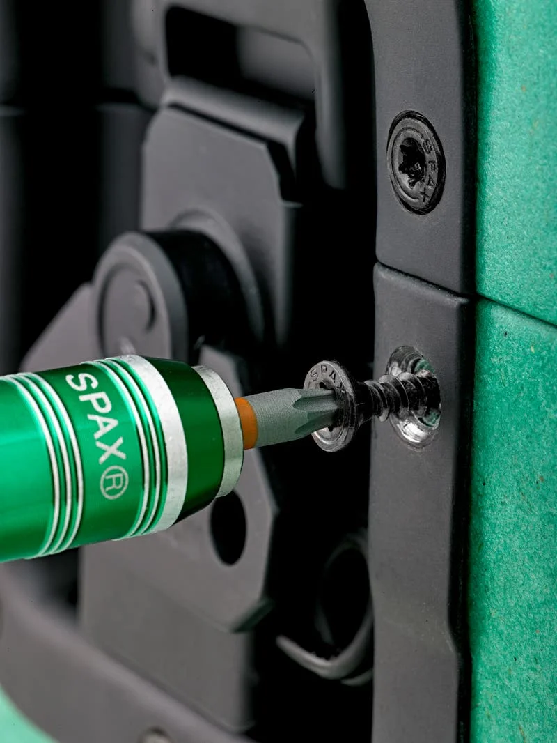 Montagekoffer L-BOXX Mini BLAX - Beinhaltet 800 Schrauben in 6 Abmessungen: 200 x 3,5x16, 200 x 3,5x30, 100 x 3,5x40, 150 x 4,0x25, 100 x 4,0x35, 50 x 4,5x50 & 3 x T20 T-STAR Bit | Bündiges Versenken der Schrauben: Mit seiner polygonen Unterseite („Taschen“) fräst sich der Senkkopf selbst ins Holz oder wird beim Aufsetzen auf Metall gebremst, um ein Überdrehen oder Schäden an Beschlägen zu verhindern | Einfaches, schnelles und sicheres Verschrauben: dank perfektem Passsitz und optimaler Kraftübertragung des Bits. Mit dem T-STAR plus Kraftangriff ist arbeiten auch über Kopf einfach möglich. | Einsatz im dekorativen Möbelbau bei Verwendung von dunklen/antiken Hölzern oder bei dunklen Möbeln/Metallbeschlägen | Energiesparendes Arbeiten: dank der 4CUT-Spitze ist Vorbohren meistens unnötig und die Spaltwirkung wird reduziert. Das wellenförmige Gewinde der SPAX ermöglicht schnelles wie sicheres Verschrauben und spart Akkuleistung | Ordentliche Aufbewahrung und sicherer Transport durch SPAX L-BOXXen - Unsere komplette Schraubenbox enthält 800 Schrauben in verschiedenen Abmessungen, alle ausgestattet mit unseren Innovationen Senkkopf, T-STAR plus und BLAX-Beschichtung. Dazu finden im modular gestaltbaren Innenraum natürlich auch 3 Bits T20 in T-STAR plus-Ausführung Platz. Die L-BOXX Mini BLAX lässt sich mit weiteren L-BOXXen aus unserem Sortiment per Klickmechanismus verbinden und passt ebenso perfekt in eine Fahrzeugeinrichtung von Bosch Sortimo. Das bedeutet für Sie: Nie wieder Schrauben suchen, Sie haben alle wichtigen Abmessungen immer ordentlich und griffbereit zur Hand. Mit einer passenden Fahrzeugeinrichtung ist der Transport absolut sicher.